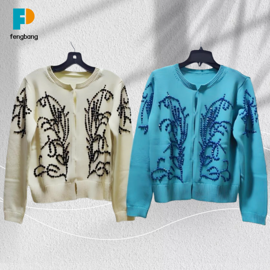 Sonbahar ve kış aylarında fazla çaba harcamadan şık giyinmek ister misiniz? El dikişi boncuklu bu hırka estetik tercihlerinizi kesinlikle tatmin edecek! Hem krem hem de lacivert renkleri bulunan yumuşak renk şeması, rahat bir hava yayıyor. Gardırobunuzdaki her iç çamaşırıyla eşleştirebileceğiniz "evrensel bir stil"dir.