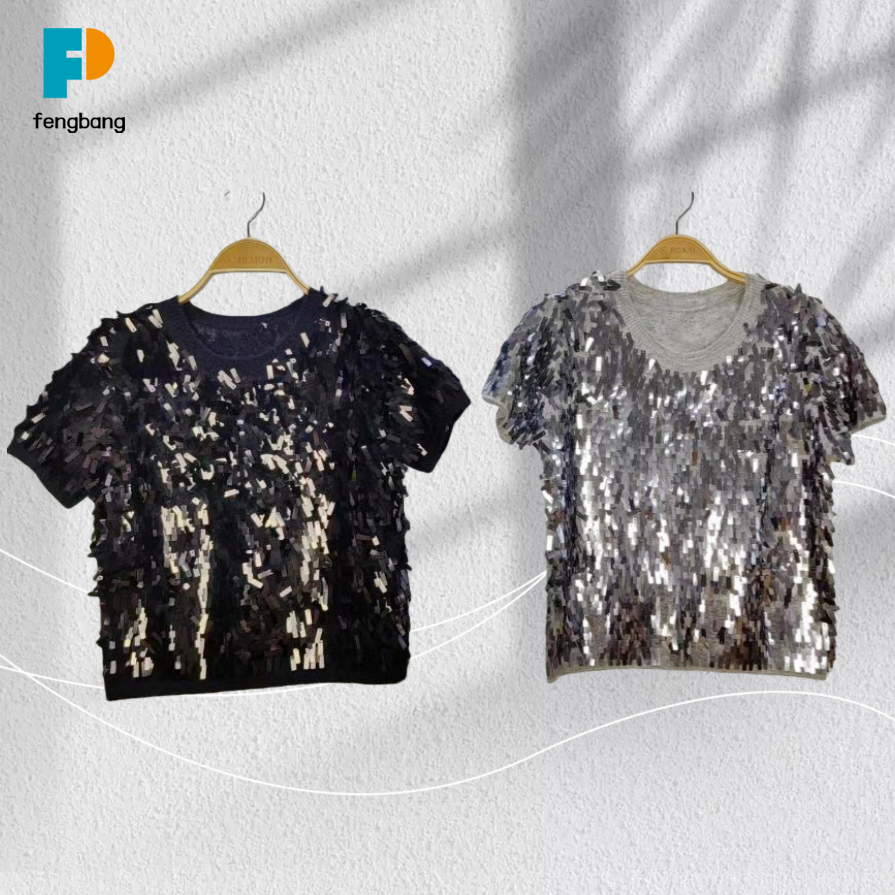 Kadın Parti Tarzı Kısa Kollu Payet Üst